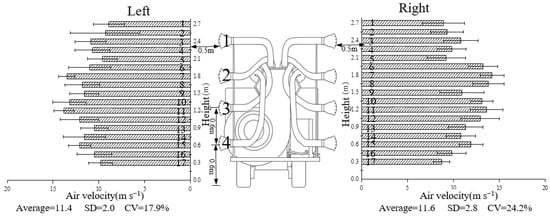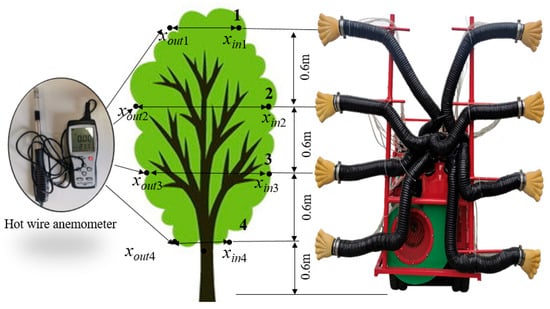 Airflow regulation is essential for optimizing pesticide deposition in orchard spraying. This study developed an airflow attenuation model for a five-port air-assisted sprayer by integrating jet dynamics with crown resistance characteristics. The tree crown was modeled as a porous medium with calibrated resistance