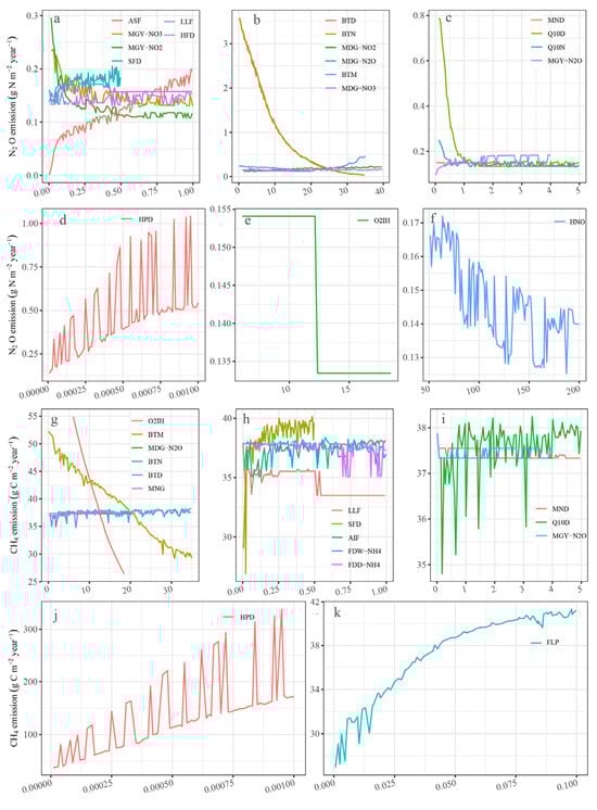 Sensitivity Analysis of N2O and CH4 Emissions in a Winter Wheat–Rice Double Cropping System