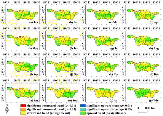 The Gravity Recovery and Climate Experiment (GRACE) tracks drought events by detecting changes in the global gravitational field and capturing abnormal information on the reserves of surface water, soil water, and groundwater, which makes it possible for a more comprehensive and unified global and regional monitoring of groundwater drought. This study adopted the gravity satellite GRACE data and combined it with the hydrological model dataset. Additionally, we assessed the temporal evolution and spatial pattern of groundwater drought in the Yangtze River Basin (YRB) and its sub-basins from 2003 to 2022, determined the change points of the hidden seasonal and trend components in groundwater drought, and identified the direct/indirect driving contributions of the main climatic and circulation factors to groundwater drought. The results show that (1) as a normalized index, the groundwater drought index (GDI) can reflect direct evidence of any surplus and deficit in groundwater availability. During the study period, the minimum value (−1.66) of the GDI occurred in July 2020 (severe drought). (2) The average value of GDI in the entire basin ranged from −1.66 (severe drought) to 0.52 (no drought). (3) The average Zs values (Mann–Kendall Z-statistic) of GDI were −0.23, −0.16, −0.43, and 0.14, respectively, and the proportions of areas with aggravated drought reached 65.21%, 61.05%, 89.70% and 43.67%, respectively. (4) Partial wavelet coherence analysis can simultaneously reveal the local correlations of time series at different time scales and frequencies. Based on partial wavelet analysis, precipitation was the best factor for explaining the dynamic changes in groundwater drought. (5) The North Pacific Index (NPI), the Pacific/North American Index (PNA), and the Sunspot Index (SSI) can serve as the main predictors that can effectively capture the drought changes in groundwater in the YRB. The GRACE satellite can provide a new tool for monitoring, tracking, and assessing groundwater drought situations, which is of great significance for guiding the development of the drought early warning system in the YRB and effectively preventing and responding to drought disasters.