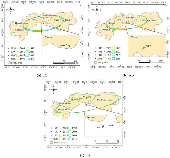 In the context of global climate change and intensified water resource constraints, studying the evolution of the urban–agricultural–ecological spatial structure and the water–heat–vegetation responses driven by large-scale irrigation and drainage projects in arid and semi-arid regions is of great significance. Based on multitemporal remote sensing data from 1985 to 2015, this study takes the Inner Mongolia Hetao Plain as the research area, constructs a “multifunctionality–dynamic evolution” dual-principle classification system for urban–agricultural–ecological space, and adopts the technical process of “separate interpretation of each single land type using the maximum likelihood algorithm followed by merging with conflict pixel resolution” to improve the classification accuracy to 90.82%. Through a land use transfer matrix, a standard deviation ellipse model, surface temperature (LST) inversion, and vegetation fractional coverage (VFC) analysis, this study systematically reveals the spatiotemporal differentiation patterns of spatial structure evolution and surface parameter responses throughout the project’s life cycle. The results show the following: (1) The spatial structure follows the path of “short-term intense disturbance–long-term stable optimization”, with agricultural space stability increasing by 4.8%, the ecological core area retention rate exceeding 90%, and urban space expanding with a shift from external encroachment to internal filling, realizing “stable grain yield with unchanged cultivated land area and improved ecological quality with controlled green space loss”. (2) The overall VFC shows a trend of “central area stable increase (annual growth rate 0.8%), eastern area fluctuating recovery (cyclic amplitude ±12%), and western area local improvement (key patches increased by 18%)”. (3) The LST-VFC relationship presents spatiotemporal misalignment, with a 0.8–1.2 °C anomalous cooling in the central region during the construction period (despite a 15% VFC decrease), driven by irrigation water thermal inertia, and a disrupted linear correlation after completion due to crop phenology changes and plastic film mulching. (4) Irrigation and drainage projects optimize water resource allocation, constructing a hub regulation model integrated with the Water–Energy–Food (WEF) Nexus, providing a replicable paradigm for ecological effect assessment of major water conservancy projects in arid regions.