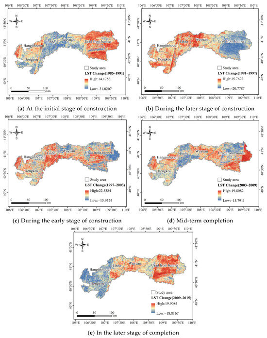 In the context of global climate change and intensified water resource constraints, studying the evolution of the urban–agricultural–ecological spatial structure and the water–heat–vegetation responses driven by large-scale irrigation and drainage projects in arid and semi-arid regions is of great significance. Based on multitemporal