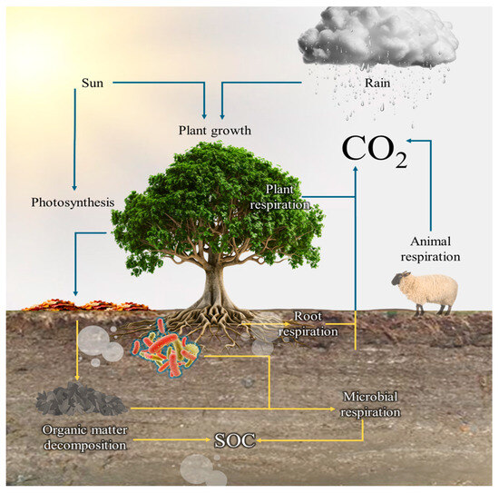 Plant–Soil Microbe Interactions’ Effects on CO2 Emissions, Soil Organic Carbon and Nutrients Under Different Tillage Systems