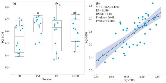 Crop rotation plays a critical role in enhancing cropping intensity and ensuring food security. To evaluate its long-term effects on soil quality, a fixed-site field experiment established in 2014 including four cropping systems—winter fallow–rice (Oryza sativa L.) (FR), potato (Solanum tuberosum