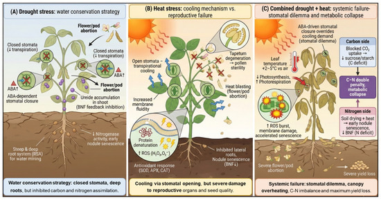 Soybean (Glycine max (L.) Merr.) plays a pivotal role in global food security as a primary source of vegetable protein and oil. However, its production is increasingly jeopardized by the frequent concurrence of drought and heat stress, a scenario predicted to intensify