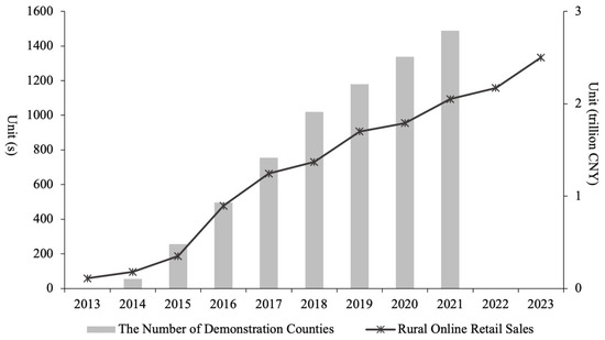 Agricultural development is vital to rural economies in developing countries. Rural e-commerce has emerged as an important instrument for promoting rural economic transformation, yet its impact on agricultural development remains underexplored. Using panel data for 1345 counties in China from 2010 to 2022, this study exploits a quasi-natural experiment created by the phased implementation of the Rural E-Commerce Demonstration County (REDC) program and applies a staggered difference-in-differences approach to identify its causal effects on agricultural development. The results show that the REDC program significantly promotes agricultural development, mainly through expanded consumer demand and greater social investment. Its effects are particularly evident in regions with balanced production and consumption and in economically developed counties. Moreover, the REDC program shows no evidence of a significant negative siphon effect within 50 km of pilot counties but generates strong positive spillovers in the 50–200 km surrounding range. Taken together, these findings provide empirical evidence supporting the advancement of rural e-commerce and agricultural scaling in China, while also offering policy implications for other developing countries seeking to promote rural e-commerce.