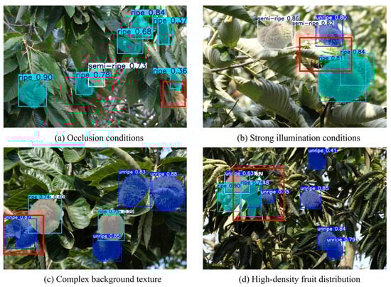Visual harvest maturity is a key visual phenotype for orchard management and harvesting decisions, yet chestnut fruits in natural orchards often exhibit weak color contrast, subtle texture variation, blurred boundaries, and frequent occlusion under complex illumination. This study addresses RGB-based visual harvest maturity