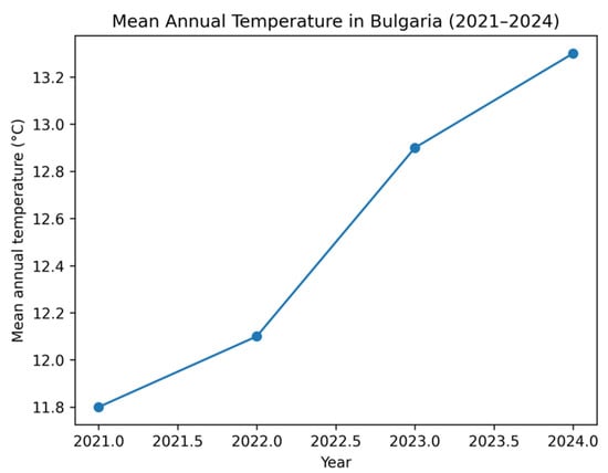 Climate change exerts an increasing impact on the health and resilience of honey bees through a combination of rising temperatures, altered precipitation patterns, and intensified parasitic and infectious pressure. The present study aims to analyze climatic conditions in Bulgaria for the period 2021–2024