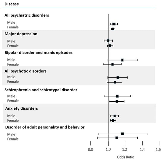 Background/Objectives: Atopic dermatitis (AD) is a chronic inflammatory skin disorder increasingly recognized for its association with psychiatric comorbidities. However, the extent of this association compared to dermatologic controls in Asian populations remains underexplored. We sought to evaluate the prevalence and risk of psychiatric