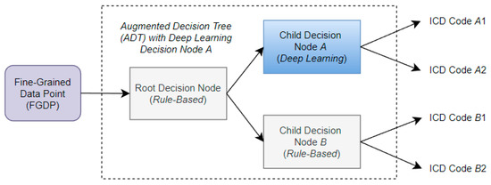 Integrating Deep Learning Nodes into an Augmented Decision Tree for Automated Medical Coding