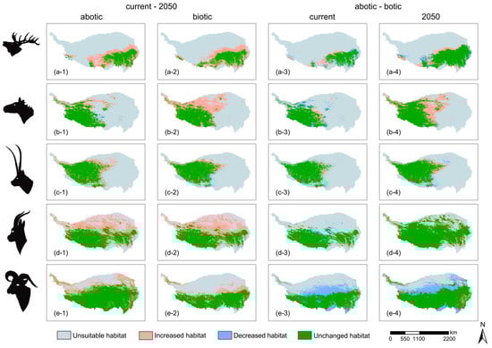 Climate Change and Biotic Interactions Will Change the Distributions of Ungulates on the Qinghai–Tibet Plateau