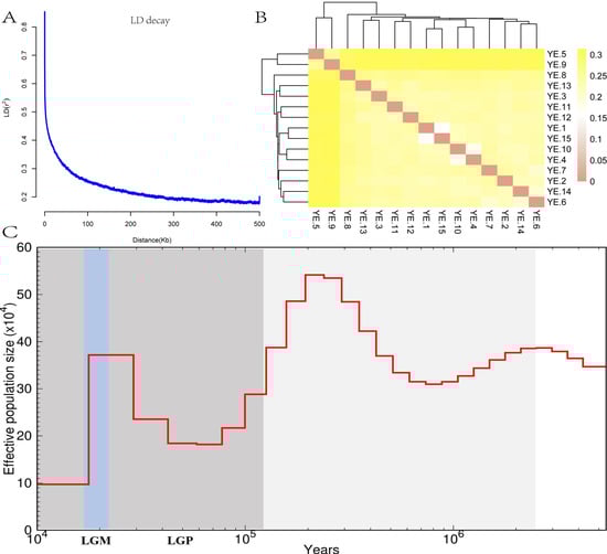The Yan goose (YE, Anser cygnoides) is a valuable indigenous poultry genetic resource, renowned for its superior meat quality and environmental adaptability. Despite its economic importance, the genetic basis underlying these adaptive traits remains unclear. In this study, we employed whole-genome resequencing (WGS) to perform high-throughput sequencing on a conserved population of 15 samples. Bioinformatic analyses were conducted to systematically evaluate the population’s genetic structure, and a genome-wide scan for selection signals related to economically significant traits was performed using the integrated haplotype score (iHS) method. An average of 4.43 million high-quality SNPs were identified, which were predominantly located in intergenic and intronic regions. Population structure analysis revealed a close genetic relationship within the conserved population of YE, with no significant lineage stratification observed. Pairwise sequentially Markovian coalescent (PSMC) analysis indicated that the YE underwent a severe genetic bottleneck during the Last Glacial Maximum (LGM), followed by gradual population recovery in the early Neolithic period. Genome-wide selection signal scanning identified multiple genomic regions under strong selection, annotating key genes associated with growth and development (e.g., GHRL, AKT1, and MAPK3), lipid deposition (e.g., PLPP4, SAMD8, and LPIN1), and disease resistance and stress resilience (e.g., TP53, STAT3). Functional enrichment analysis revealed significant enrichment of these genes in pathways related to glycerophospholipid metabolism (p < 0.01), purine metabolism (p < 0.01), and immune response (p < 0.01). This study not only provides a theoretical foundation for the scientific conservation of the YE germplasm resources but also offers valuable genomic resources for identifying functional genes underlying important economic traits and advancing molecular breeding strategies.