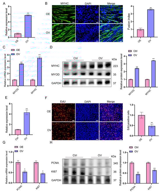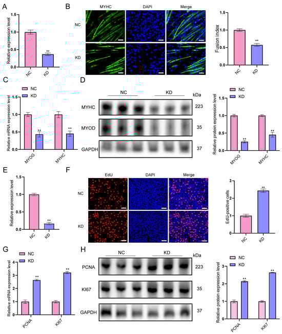 Long-chain non-coding RNAs (lncRNAs) play important regulatory roles in the growth and development of skeletal muscle, but systematic identification and functional studies of lncRNAs related to porcine skeletal muscle development remain limited. Based on a previously constructed panoramic map of porcine skeletal muscle lncRNAs, lncRNA-ssc.37456 was identified as differentially expressed in porcine skeletal muscle before and after birth. Its function and potential mechanisms were investigated using a porcine skeletal muscle regeneration model, a primary skeletal muscle cell differentiation model, and knockdown and overexpression experiments in vitro. lncRNA-ssc.37456 was upregulated on day 7 of regeneration, with expression positively correlated with the muscle differentiation marker MYHC and negatively correlated with the proliferation marker PAX7. During differentiation of porcine primary myoblasts, expression continuously increased, peaking on day 4. Knockdown of lncRNA-ssc.37456 by small interfering RNA (siRNA) significantly increased cell proliferation, upregulated mRNA and protein levels of proliferation-related genes KI67 and PCNA, and increased the proportion of EdU-positive cells. Conversely, expression of differentiation-related genes MYOG and MYHC decreased, and immunofluorescence analysis revealed reduced myotube formation and differentiation index. Overexpression of lncRNA-ssc.37456 promoted differentiation and inhibited proliferation, showing effects opposite to those observed in knockdown experiments. Nucleocytoplasmic fractionation indicated predominant cytoplasmic localization, suggesting potential function through a ceRNA mechanism. An interaction network with miRNAs was constructed based on the miRDB database, indicating a potential miRNA “sponge” regulatory mechanism. These results indicate that lncRNA-ssc.37456 participates in porcine skeletal muscle development by regulating the transition of muscle cells from proliferation to differentiation, providing molecular insights and potential targets for muscle biology research and the molecular breeding of growth traits.