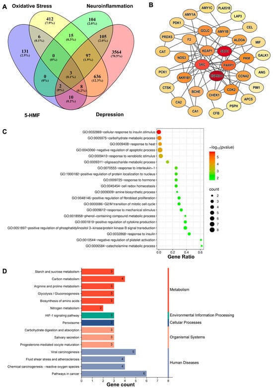 5-hydroxymethylfurfural (5-HMF) has been shown to exert neuroprotective effects in a global cerebral ischemia mouse model in our previous study, where it demonstrated antioxidant and anti-inflammatory properties. However, studies on its antidepressant mechanisms remain scarce. Since oxidative stress and neuroinflammation are closely associated