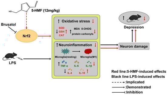 5-Hydroxymethylfurfural Alleviates Lipopolysaccharide-Induced Depression-like Behaviors by Suppressing Hypothalamic Oxidative Stress and Regulating Neuroinflammation in Mice