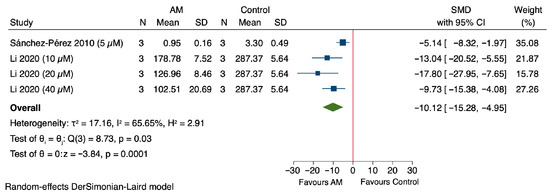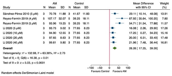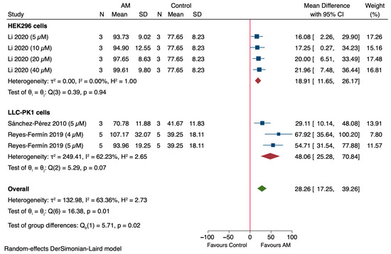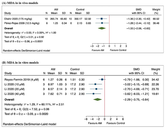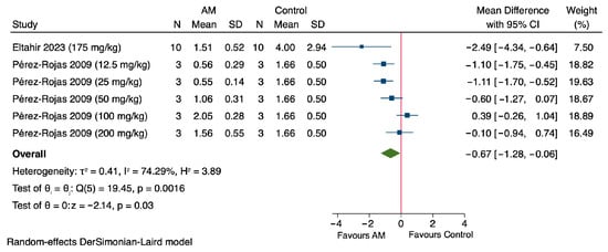 Acute kidney injury (AKI) is characterized by rapid loss of renal function due to oxidative stress, inflammation, and apoptosis, with limited targeted therapies. Alpha-mangostin (AM), a natural compound from Garcinia mangostana, exhibits antioxidant and anti-inflammatory properties in preclinical studies, but its efficacy in AKI has not been reviewed. This systematic review and meta-analysis, registered on the Open Science Framework and adhering to PRISMA guidelines, analyzed in vivo and in vitro studies on AM’s effects in AKI models through searches of PubMed, Scopus, Embase, and Web of Science. Primary outcomes included serum creatinine and cell viability, while secondary outcomes encompassed oxidative stress markers (malondialdehyde (MDA), glutathione (GSH), reactive oxygen species (ROS)), inflammatory cytokines, apoptosis indicators, and histopathology. Data were extracted independently and assessed using the Toxicological Data Reliability Assessment Tool (ToxRTool). AM significantly reduced serum creatinine (mean difference (MD) = −0.67 mg/dL; 95% confidence interval (CI): −1.28 to −0.06; p = 0.03) and improved cell viability (MD = 28.26%; 95% CI: 17.25 to 39.26; p < 0.0001). It markedly decreased MDA and ROS, increased GSH, and enhanced antioxidant enzymes (glutathione peroxidase (GPx), glutathione reductase (GR), superoxide dismutase (SOD)). In vivo, tumor necrosis factor-alpha (TNF-α) and interleukin-6 (IL-6) were lowered, and histopathology showed reduced tubular necrosis and structural damage. Subgroup analyses indicated dose- and model-dependent effects, with lower doses often yielding greater benefits. Sensitivity analyses confirmed robustness despite heterogeneity. Preclinical evidence supports AM’s nephroprotective potential and underscores the need for dose optimization, mechanistic validation, and clinical translation.