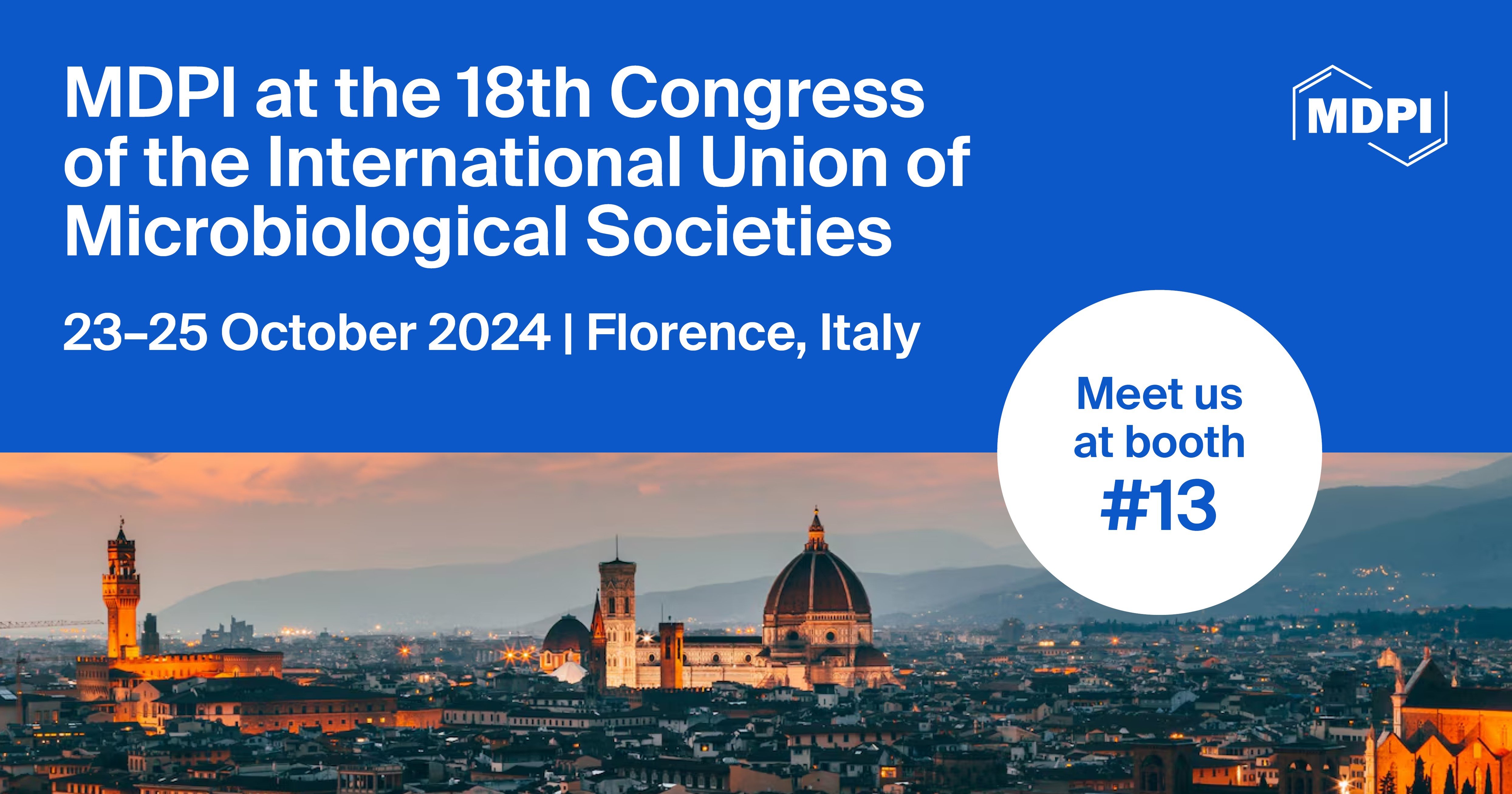 MDPI will be attending the 18th Congress of the International Union of Microbiological Societies held in Florence, Italy, from 23 to 25 October 2024. IUMS 2024 aims to connect medical and non-medical microbiologists from various disciplines and promote the discussion of “Microorganisms for Sustainable Solutions: Environmental and Clinical Implementations”. The conference will invite well-known scholars in related fields to present reports on bacteriology and applied microbiology, virology, and mycology and eukaryotic microbiology.