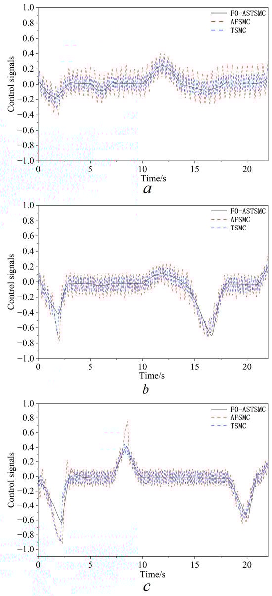 This study proposes a fractional-order adaptive super-twisting sliding mode control (FO-ASTSMC) strategy to mitigate the difficulties arising from nonlinearity, uncertain parameters, and substantial external interferences during path-following operations of a hydraulic excavator working device. The developed approach merges a high-order sliding mode differentiator aimed at state observation, a fresh fractional-order sliding manifold that embeds a memory component for bolstering transient performance and equilibrium accuracy, together with an adaptable super-twisting coefficient. This adaptive gain eliminates the requirement for prior awareness of disturbance limits, all the while mitigating chattering effects and bolstering system robustness. Utilizing Lyapunov theory, the finite-time stability of the overall closed-loop framework has been thoroughly demonstrated. For controller verification, joint simulations employing AMESim and Simulink platforms were performed, pitting its efficacy against both terminal sliding mode control (TSMC) and adaptive fuzzy sliding mode control (AFSMC). In nominal scenarios, the FO-ASTSMC method yielded the lowest root mean square error (RMSE) along with maximum error (MAXE) across boom, arm, and bucket articulations, registering mean decreases of in RMSE and in MAXE when benchmarked against AFSMC, alongside in RMSE and in MAXE versus TSMC. Facing sudden variations in loading, it exhibited enhanced robustness, achieving reductions of in RMSE and in MAXE beyond AFSMC, as well as in RMSE and in MAXE in comparison to TSMC. Outcomes from the simulations affirm that the suggested controller exhibits elevated precision, formidable robustness, and good applicability to actuators, thereby highlighting its considerable promise for implementation in actual engineering scenarios.