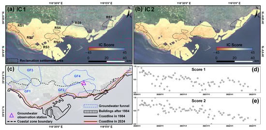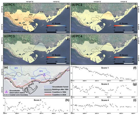 This study establishes an integrated “Detection–Decomposition–Interpretation” framework for geohazard assessment, with Tangshan City serving as a representative case. Using Sentinel-1 SAR images from 2020 to 2024, regional surface deformation was derived via the Small Baseline Subset InSAR (SBAS-InSAR) technique. Six categories of geohazards were systematically identified and classified: landslides, open-pit slope deformation, mining-induced subsidence, spoil heap deformation, tailings pond deformation, and reclamation settlement. A total of 115 potential hazards were spatially cataloged, revealing distinct zonation characteristics: the northern mountainous area is predominantly affected by landslides and open-pit mining hazards; the central plain exhibits concentrated mining subsidence; and the southern coastal zone is marked by large-scale reclamation settlement. For the southern reclamation area, where settlement mechanisms are complex, the Independent Component Analysis (ICA) method was applied to successfully decompose the deformation signals into three independent components: IC1, representing the dominant long-term irreversible settlement driven by fill consolidation, building loads, and groundwater extraction; IC2, reflecting seasonal deformation coupled with groundwater level fluctuations; and IC3, comprising residual noise. Time series analysis further reveals the coexistence of “decelerating” and “accelerating” settlement trends across different zones, indicative of their respective evolutionary stages—from decaying to actively progressing settlement. This study not only offers a scientific basis for geohazard prevention and control in Tangshan, but also provides a transferable framework for analyzing hazard mechanisms in other complex geographic settings.