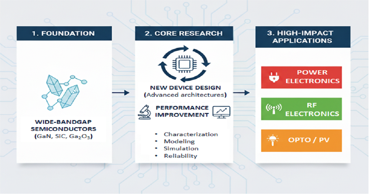 Keywords: gallium nitride; silicon carbide; gallium oxide; wide-bandgap semiconductors; power electronics; RF electronics; optoelectronics