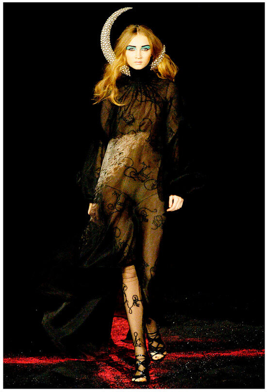 This text presents a sociological approach to the historical role that the figure of the witch has played and continues to play. Omnipresent in mythology and art, it is hardly surprising that fashion and cinema have drawn upon her as both a source of inspiration and a mirror of contemporary society. Both the catwalk and the screen have underscored the relevance of black in her attire, establishing a direct association between sombre garments and sorcery. It is inconceivable, for instance, to imagine a witch costume without certain accessories such as the hat or the broom. Yet a question arises: should we remain faithful to this imaginary, reinforced over centuries by recurring iconographic elements, or should we reconsider and deconstruct it? Accordingly, the objectives proposed here are, on the one hand, to historicise the concept of the witch as a social construct, with women erected as the embodiment of evil, and, on the other hand, to examine the role of clothing in reinforcing this construct through an exploration of the principal tendencies in fashion shows and the significance of costume design in fantastic and horror cinema.