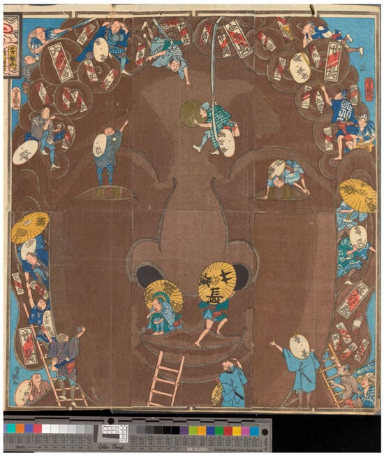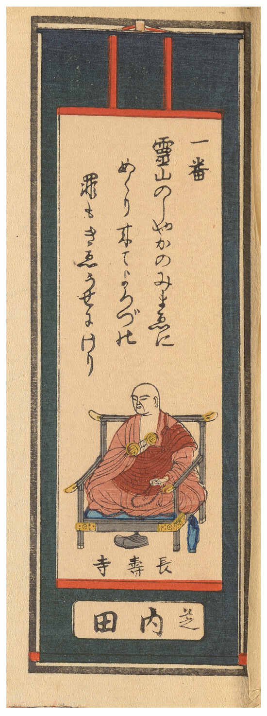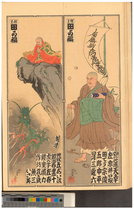 This article concerns nōsatsu, also known in Japanese as senjafuda and generally known as “votive slips” in English. Nōsatsu emerged in the 18th century out of popular practices related to pilgrimage in the city of Edo. Nōsatsu practitioners who visited Buddhist temples or Shinto shrines would paste votive slips on walls or other surfaces in the belief that the pasted slip would function as a proxy for the pilgrim, continuing in prayer vigil after the pilgrim had left. Practitioners persisted in their pasting activities in the face of opposition from temples and shrines. Later, nōsatsu evolved into full-color pictorial woodblock prints meant for exchanging and collecting, rather than pasting, but the early history of pilgrimage, proxy devotion, and institutional resistance remained in both the memories of the practitioners and the iconography of the slips themselves. Through close visual analysis of several slips depicting Buddhist themes, this article will describe the attitude of transgressive devotion that characterizes nōsatsu culture.