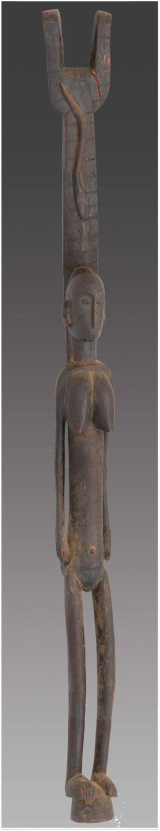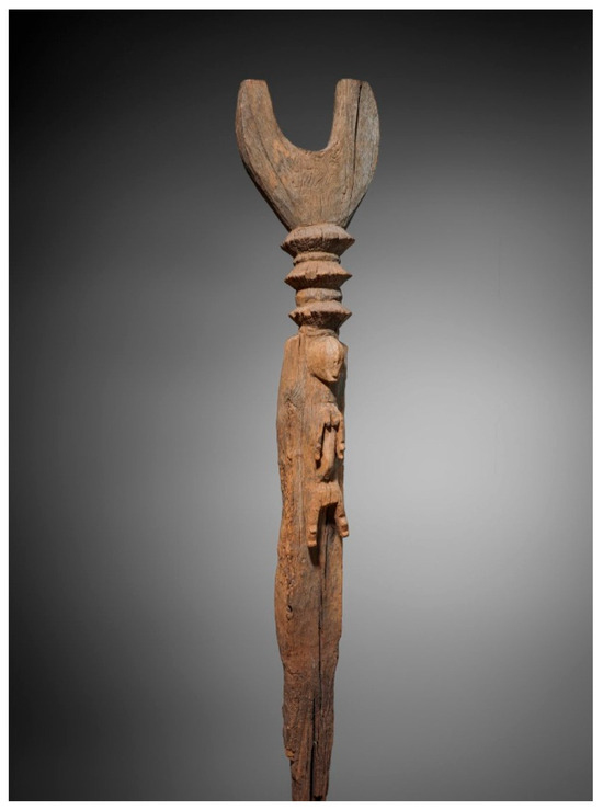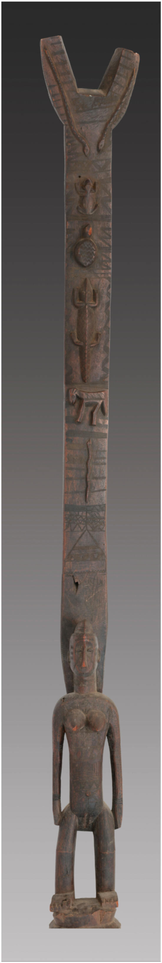 The George Washington University holds a collection of African objects donated by a private collector in the 1970s, many of which are culturally misattributed. Among the objects are two large wooden posts cataloged as “house posts” from Côte d’Ivoire. These posts exhibit two
