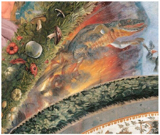 This article examines the unexplained image of a reptilian creature in the fire of a spandrel of Raphael’s Loggia of Psyche in Villa Farnesina, Rome, from the point of view of alchemy. The essay identifies the probable alchemical literary source upon which the