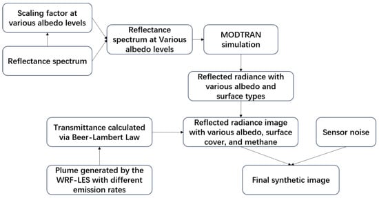 Methane (CH4) emissions are a major contributor to greenhouse gases and pose significant challenges to global climate mitigation efforts. The accurate determination of CH4 concentrations via remote sensing is crucial for emission monitoring but remains impeded by surface spectral heterogeneity—notably albedo variations and land cover diversity. This study systematically assessed the sensitivity of three mainstream algorithms, namely, matched filter (MF), albedo-corrected reweighted-L1-matched filter (ACRWL1MF), and differential optical absorption spectroscopy (DOAS), to surface type, albedo, and emission rate through high-fidelity simulation experiments, and proposed a dynamic regularized adaptive matched filter (DRAMF) algorithm. The experiments simulated airborne hyperspectral imagery from the Airborne Visible/InfraRed Imaging Spectrometer-Next Generation (AVIRIS-NG) with known CH4 concentrations over diverse surfaces (including vegetation, soil, and water) and controlled variations in albedo through the large-eddy simulation (LES) mode of the Weather Research and Forecasting (WRF) model and the MODTRAN radiative transfer model. The results show the following: (1) MF and DOAS have higher true positive rates (TP > 90%) in high-reflectivity scenarios, but the problem of false positives is prominent (TN < 52%); ACRWL1MF significantly improves the true negative rate (TN = 95.9%) through albedo correction but lacks the ability to detect low concentrations of CH4 (TP = 63.8%). (2) All algorithms perform better at high emission rates (1000 kg/h) than at low emission rates (500 kg/h), but ACRWL1MF performs more robustly in low-albedo scenarios. (3) The proposed DRAMF algorithm improves the F1 score (0.129) by about 180% compared to the MF and DOAS algorithms and improves TP value (81.4%) by about 128% compared to the ACRWL1MF algorithm through dynamic background updates and an iterative reweighting mechanism. In practical applications, the DRAMF algorithm can also effectively monitor plumes. This research indicates that algorithms should be selected considering the specific application scenario and provides a direction for technical improvements (e.g., deep learning model) for monitoring gas emission.