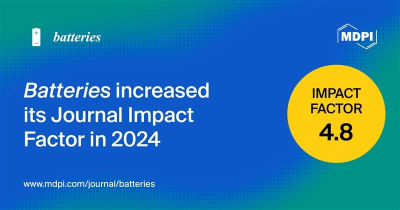We are pleased to share that Batteries (ISSN: 2313-0105) was awarded an increased Impact Factor of 4.8 in the 2024 Journal Citation Reports™ released by Clarivate™ in June 2025. The journal ranks as follows: