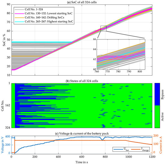 Battery system engineers face the challenge of balancing competing requirements regarding performance, maintainability, sustainability, safety, and cost—especially in the automotive industry. Intelligent battery systems potentially offer a solution with fewer trade-offs. They feature a battery management system with advanced sensing and data analysis capabilities that facilitate improved battery monitoring and operation. Reconfigurable energy storage units enable sophisticated operating strategies, including complete cell state control, full energy content utilization, and a measured response to faults. This article presents the design, development, and operation of a full-scale intelligent battery system prototype comprising 324 automotive lithium-ion cells with a nominal voltage of 400 V. The system exhibits a modular single cell architecture and an advanced centralized battery management system. We detail the system architecture, hardware and software component design, and system integration. Initial tests demonstrate the battery’s operability, extended functionality, and enhanced safety. Our analysis shows that the additional losses introduced by reconfigurability are more than offset by the benefits of full energy utilization—even for new cells, with increasing advantage as aging progresses. The results underscore the potential of intelligent battery systems and motivate further research and development toward economic assessment and industrial adoption. Full article