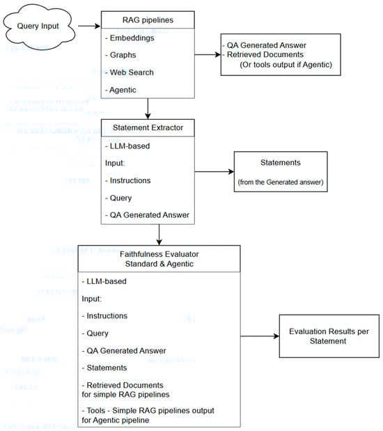 As Large Language Models (LLMs) are core components in Retrieval-Augmented Generation (RAG) systems for knowledge-intensive tasks, concerns regarding hallucinations, redundancy, and unverifiable outputs have intensified, particularly in high-stakes domains, such as e-government. This study proposes a modular, multi-pipeline framework for statement-level faithfulness evaluation