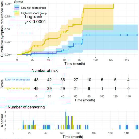 Objective: To investigate long-term prognosis and impact factors in children with vasovagal syncope (VVS) receiving metoprolol therapy. Method: This retrospective study included children with VVS who underwent metoprolol therapy at the Pediatric Syncope Unit of Peking University First Hospital between January 2012 and November 2023. Baseline demographic data, pre-treatment indices, including head-up tilt test (HUTT) and 24 h Holter monitoring, were collected. All participants received standardized metoprolol therapy for a minimum duration of one month. Follow-up was conducted between June and July 2025, with syncope recurrence as the primary endpoint. Multivariable Cox proportional hazards regression analysis was performed to identify independent impact factors of prognosis and to construct a Prognostic Risk Score (PRS) model. The model’s performance was rigorously validated through receiver operating characteristic (ROC) curve analysis, decision curve analysis (DCA), and Bootstrap resampling (1000 iterations). Furthermore, children were stratified into high- and low-risk groups based on median PRS values. Kaplan–Meier survival analysis was then performed to assess the model’s discriminative efficacy. Result: This study included 97 children diagnosed with VVS. The median duration of metoprolol therapy was 2.5 months (interquartile range [IQR]: 2.0–3.0 months), with a median follow-up period of 59 months (IQR: 25.5–72 months). During follow-up, syncope recurrence was observed in 37 patients, while 60 patients remained symptom-free. COX regression analysis showed that time-domain indices of heart rate variability (HRV), including the standard deviation of all NN intervals (SDNN) and the triangular index (TR), as well as the frequency-domain index of HRV very low frequency (VLF), were relative factors of the long-term prognosis in children with VVS treated with metoprolol. Based on the above three identified factors, the PRS model was calculated as: PRS = 0.03 × SDNN − 0.02 × VLF − 0.1 × TR. ROC showed that the area under the curve (AUC) for discriminative power related to long-term prognosis was 0.808 (p < 0.01). The cumulative recurrence rate of symptoms in the high-risk score group was significantly higher than that in the low-risk score group (p < 0.01). The DCA curve demonstrated the clinical applicability of the model. Bootstrap internal verification indicated high stability, with the bias-corrected and accelerated (Bca) confidence interval (CI) of the C index ranging from 0.71 to 0.89. Conclusions: After metoprolol treatment, 38.1% of children with VVS experienced syncope recurrence during a median follow-up period of 59 months. Baseline HRV index, SDNN, TR, and VLF were identified as factors associated with the long-term prognosis of children with VVS treated with metoprolol. The PRS model based on the above indices demonstrated good value in linking to the individual long-term prognosis.