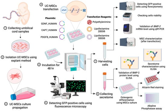 Background/Objectives: Mesenchymal stem cells (MSCs) are recognized for their therapeutic potential due to their ability to secrete bioactive molecules. Among these secreted factors, bone morphogenetic protein-2 (BMP-2) is known as a secreted factor that plays a crucial role in bone healing and
