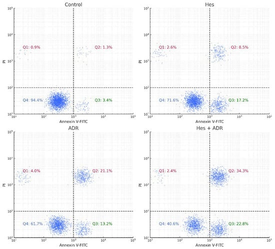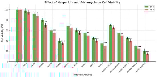 Background/Objectives: Ovarian cancer remains one of the most lethal gynecologic malignancies, primarily due to late diagnosis and the development of chemoresistance. Adriamycin (ADR) is effective but limited by systemic toxicity. Natural bioflavonoids such as hesperidin (Hes) may enhance chemotherapy efficacy through oxidative, apoptotic,