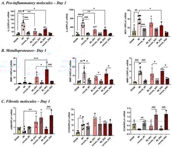 Background: Following myocardial infarction (MI), cardiac fibroblasts (CFs) adopt distinct phenotypes to ensure scar formation and healing. Although leukocytes are a critical driver of post-MI healing, the role of neutrophils in modulating CF phenotype remains insufficiently explored. We therefore investigated the impact of soluble mediators released by neutrophil subtypes found post-MI—pro-inflammatory (N1) and anti-inflammatory (N2)—on shaping CFs phenotype. Methods: In vitro, human 3D grown CFs were indirectly co-cultured with N1 or N2 neutrophil-like cells using a two-chamber Transwell system. After 24 h, expression of inflammatory, remodeling, and pro-fibrotic markers was evaluated in fibroblasts and conditioned media. In vivo, soluble mediators derived from polarized mouse neutrophils (SN1 or SN2) were injected into the infarcted myocardium of C57BL/6J after MI surgery. The effects on the healing process were investigated at 1 and 7 days post-MI. Results: In vitro, CFs were found to exhibit a pro-inflammatory and matrix-degrading phenotype following indirect co-culture with N1 cells, characterized by overexpression of IL-1β, IL-6, MCP-1, and metalloproteases MMP-3/MMP-9. In vivo, both SN1 and SN2 treatments significantly reduced pro-inflammatory markers IL-1β and IL-6 gene expression at day 1 post-MI (inflammatory phase). At day 7 post-MI (resolution phase), SN1/SN2 treatments continued to limit local inflammation, while mitigating fibrotic remodeling by reducing CCN2, α-SMA, and key extracellular matrix proteins. Conclusions: Together, these findings suggest that while N1-derived mediators promote a pro-inflammatory fibroblast phenotype in vitro, factors secreted by both N1 and N2 support a more balanced reparative response in vivo, by limiting local inflammation and potentially mitigating adverse remodeling post-MI.