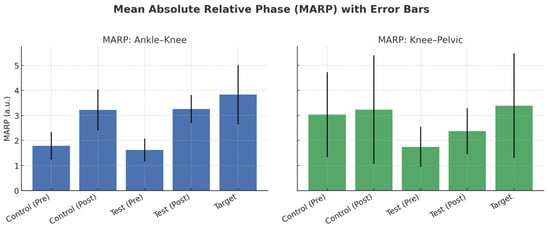 Backward running is common in handball defense and relies heavily on proprioceptive control when visual information is limited. Twenty-eight male handball players were allocated to three groups: experimental novice group with blindfold training (n = 7), control novice group with the same training without blindfold (n = 7), and target professional group (n = 14). Both novice groups completed a 6-week balance program (3 × 20 min/week). Lower-limb kinematics during backward running were captured with a 6-camera motion analysis system, and inter-joint coordination was quantified by Mean Absolute Relative Phase (MARP) and Deviation Phase (DP) for ankle–knee and knee–pelvic couplings. At baseline, professionals showed greater ankle–knee MARP than novices (ANOVA F(2,25) = 9.42, p < 0.001). Representative means (mean ± SD): ankle–knee MARP novices 1.62–1.79 vs. professionals 3.83. After training, ankle–knee MARP increased in both novice groups (experimental: t(6) = 4.72, p < 0.001; control: t(6) = 5.02, p < 0.001), approaching professional values (post-training novices ≈ 3.22–3.26). Post-training between-group differences were non-significant for ankle–knee MARP (ANOVA F(2,25) = 1.24, p = 0.30), while ankle–knee DP showed a group effect (F(2,25) = 5.12, p = 0.01; experimental vs. professional t(19) = 3.12, p = 0.01). A short-term balance program improved ankle–knee coordination during backward running in novice male players; additional blindfolding did not yield extra benefit over 6 weeks. These findings can inform short-term training and rehabilitation planning for handball, while long-term effects require future study.