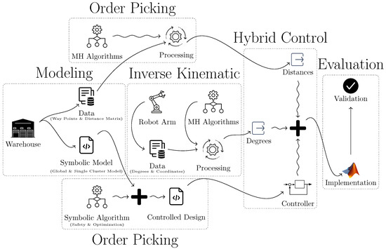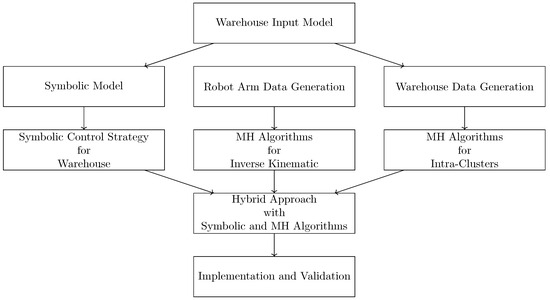 In this study, we propose an architectural model for path optimization in cluster order picking within warehouse robotics, utilizing a hybrid approach that combines symbolic control and metaheuristic techniques. Among the optimization strategies, we incorporate bio-inspired metaheuristic algorithms such as the Walrus Optimization Algorithm (WOA), Puma Optimization Algorithm (POA), and Flying Foxes Algorithm (FFA), which are grounded in behavioral models observed in nature. We consider large-scale warehouse robotic systems, partitioned into clusters. To manage shared resources between clusters, the set of clusters is first formulated as a symbolic control design task within a discrete synthesis framework. Subsequently, the desired control goals are integrated into the model, encoded using parallel synchronous dataflow languages; the resulting controller, derived using our safety-focused and optimization-based synthesis approach, serves as the manager for the cluster. Safety objectives address the rigid system behaviors, while optimization objectives focus on minimizing the traveled path of the warehouse robots through the constructed cost function. The metaheuristic algorithms contribute at this stage, drawing inspiration from real-world animal behaviors, such as walruses’ cooperative movement and foraging, pumas’ territorial hunting strategies, and flying foxes’ echolocation-based navigation. These nature-inspired processes allow for effective solution space exploration and contribute to improving the quality of cluster-level path optimization. Our hybrid approach, integrating symbolic control and metaheuristic techniques, demonstrates significantly higher performance advantage over existing solutions, with experimental data verifying the practical effectiveness of our approach. Our proposed algorithm achieves up to 3.01% shorter intra-cluster paths compared to the metaheuristic algorithms, with an average improvement of 1.2%. For the entire warehouse, it provides up to 2.05% shorter paths on average, and even in the worst case, outperforms competing metaheuristic methods by 0.28%, demonstrating its consistent effectiveness in path optimization.