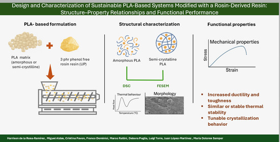Design and Characterization of Sustainable PLA-Based Systems Modified with a Rosin-Derived Resin: Structure–Property Relationships and Functional Performance