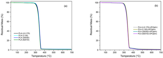 The design of sustainable polymer systems with tunable properties is essential for next-generation functional materials. This study examines the influence of a phenol-free modified rosin resin (Unik Print™ 3340, UP)—a maleic anhydride- and fumaric acid-modified gum rosin—on the structural, thermal, rheological, and mechanical behavior of four poly(lactic acid) (PLA) grades with different molecular weights and crystallinity. Blends containing 3 phr of UP were prepared by melt compounding. Thermogravimetric analysis showed that the incorporation of UP did not alter the thermal degradation of PLA, confirming stability retention. In contrast, differential scanning calorimetry revealed that UP affected thermal transitions, suppressing crystallization and melting in amorphous PLA grades and shifting the crystallization temperature to lower values in semi-crystalline grades. The degree of crystallinity decreased for low-molecular-weight semi-crystalline PLA but slightly increased in higher-molecular-weight samples. Mechanical tests indicated that UP acted as a physical modifier, increasing toughness by over 25% for all PLA grades and up to 60% in the amorphous, low-molecular-weight grade. Rheological measurements revealed moderate viscosity variations, while FESEM analysis confirmed microstructural features consistent with improved ductility. Overall, UP resin enables fine tuning of the structure–property relationships of PLA without compromising stability, offering a sustainable route for developing bio-based polymer systems with enhanced mechanical performance and potential use in future biomimetic material designs.