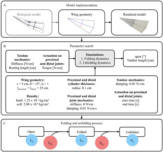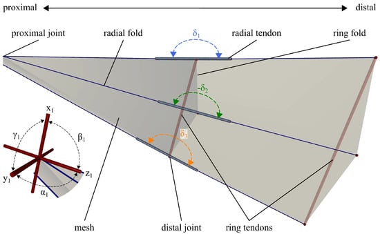![Schematic drawing of the dermapteran hindwing, modified after [1,2]. The marginal area is highlighted in blue, and the anal fan in orange. Dashed lines indicate fold lines, whereas + marks a mountain fold and − marks a valley fold.](https://mdpi-res.com/biomimetics/biomimetics-11-00009/article_deploy/html/images/biomimetics-11-00009-g001-550.jpg)