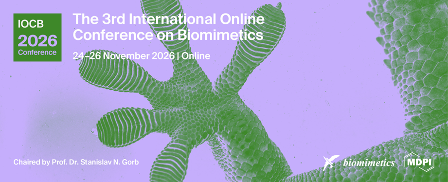 We would like to invite you to join the 3rd International Online Conference on Biomimetics (IOCB2026), which will be hosted online from the 24 November to the 26 November 2026. IOCB2026 will be free of charge for presenters (and visitors).