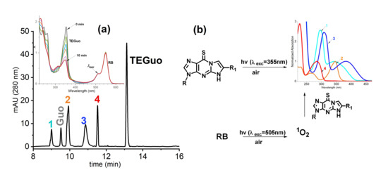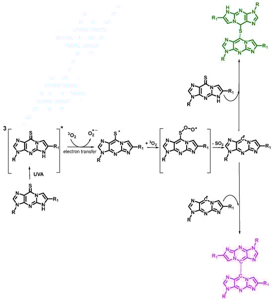 Analogs of tricyclic thiopurine nucleosides combine structural features of endogenous DNA adducts with efficient photosensitizing chromophores, making them valuable models for studying nucleic acid damage induced by reactive oxygen species (ROS). In this work, we investigate the photochemical properties of two tricyclic guanosine