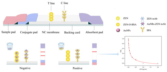 Zearalenone (ZEN), a stable mycotoxin with estrogenic activity produced by various Fusarium species, poses a serious food safety risk. To facilitate the rapid, sensitive, on-site detection of ZEN in maize and ensure consumer dietary safety, a colloidal gold immunochromatographic assay (CG-ICA) based on