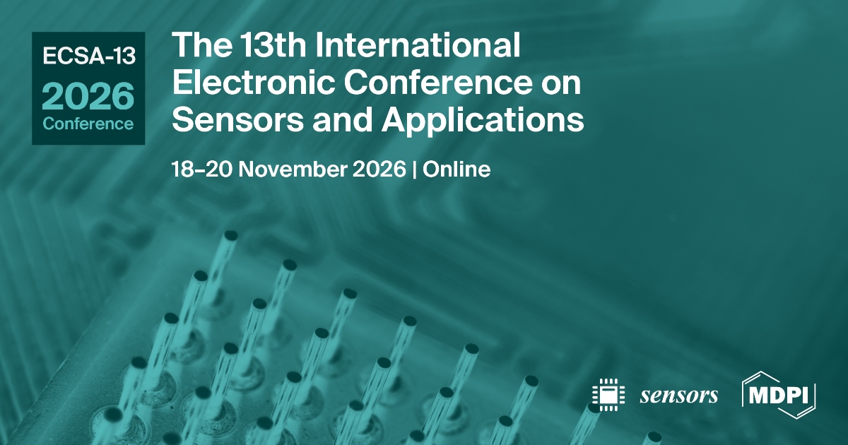 We are pleased to announce the 13th International Electronic Conference on Sensors and Applications, organized by Sensors (ISSN 1424-8220, Impact Factor 3.5, CiteScore 8.2). The conference will be chaired by Prof. Dr. Stefano Mariani, Prof. Dr. Francisco Falcone, and Prof. Dr. Jean-Marc Laheurte, and will take place virtually from 18 to 20 November 2026.