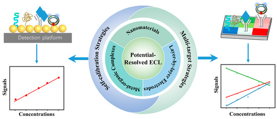 In comparison with other optical-based analytical methods, the ECL process offers some advantages: Firstly, the emission of light in ECL does not require an external source of light, eliminating background noise from the sample’s auto fluorescence or scattered light. Secondly, the emission of light in ECL can be controlled by the potential applied at an electrode. In addition, the ECL technique offers precise control over the emission position, since the emission in ECL is close to the electrode surface, which is advantageous for selectivity, sensitivity, imaging analysis, and the detection of multianalytes. Thirdly, some ECL reactants can be electrochemically regenerated at the electrode. This enhances the sensitivity of the technique, reduces the use of reactants, and simplifies the instrument. Consequently, ECL is an extremely effective analytical tool in the realm of sensing research, as well as in commercial and clinical applications.
