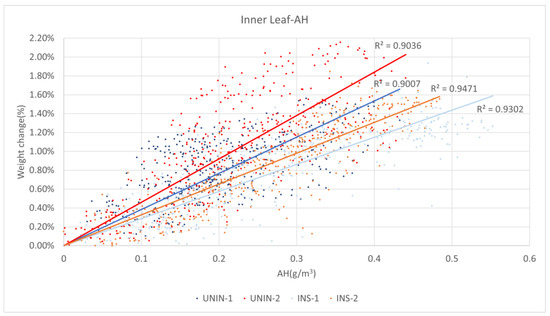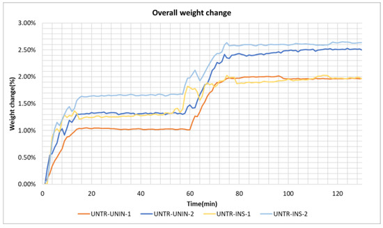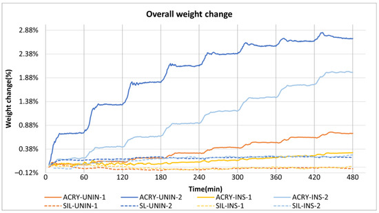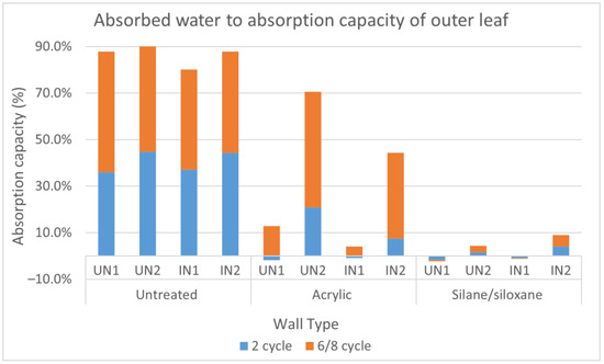 2e, respectively. Water consumption was lowest for the EW-T-02 wooden wall (0.08 m