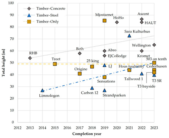 2K. The LCA highlighted that the wooden wall EW-T-02 presented the lowest integrated non-renewable energy demand (PENTR) at 425.70 MJ/kg and the most favorable Global Warming Potential (GWP), with a reduction of 55.51 kg CO