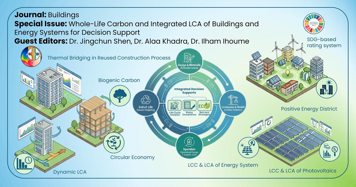 In the area of whole-life carbon, integrated Life Cycle Assessment (LCA) is essential for understanding and mitigating the environmental impacts of both buildings and energy systems throughout their entire lifespan. This Special Issue, “Whole-Life Carbon and Integrated LCA of Buildings and Energy Systems for Decision Support”, aims to accumulate relevent knowledge and practice in this domain by addressing both embodied and operational carbon within a unified framework.