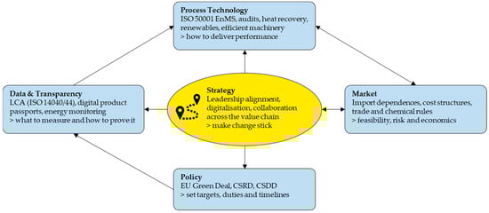 This systematic literature review critically examines sustainability challenges and opportunities within fibre-based process industries (e.g., paper and nonwoven), pivotal energy-intensive sectors in the EU. Using an adapted PRISMA guideline, it analyses the evolution of sustainability concepts, key regulatory frameworks (e.g., European Green Deal, Corporate Sustainability Reporting Directive), and established management tools (e.g., ISO 50001, life cycle assessment). The review uncovers critical gaps, including a persistent lack of integrated approaches across environmental, economic, and social dimensions, alongside superficial strategic embedding of sustainability. Furthermore, regulatory fragmentation significantly hinders effective implementation. The study also highlights uneven technology adoption and practical obstacles for circular economy models, largely because sustainability often remains a parallel function rather than a core business driver. Ultimately, transformative sustainability demands integrated, sector-specific strategies, robust data, and strong leadership. This necessitates streamlined regulations, accelerated technology uptake, and enhanced multi-stakeholder collaboration, embedding sustainability into core business models beyond mere compliance.