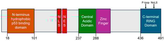 The p53 tumor suppressor protein plays a central role in maintaining genomic stability by regulating cell cycle arrest, apoptosis, and DNA repair under cellular stress. Mouse double minute 2 (MDM2), an E3 ubiquitin ligase, negatively regulates p53 via direct binding and proteasomal degradation.